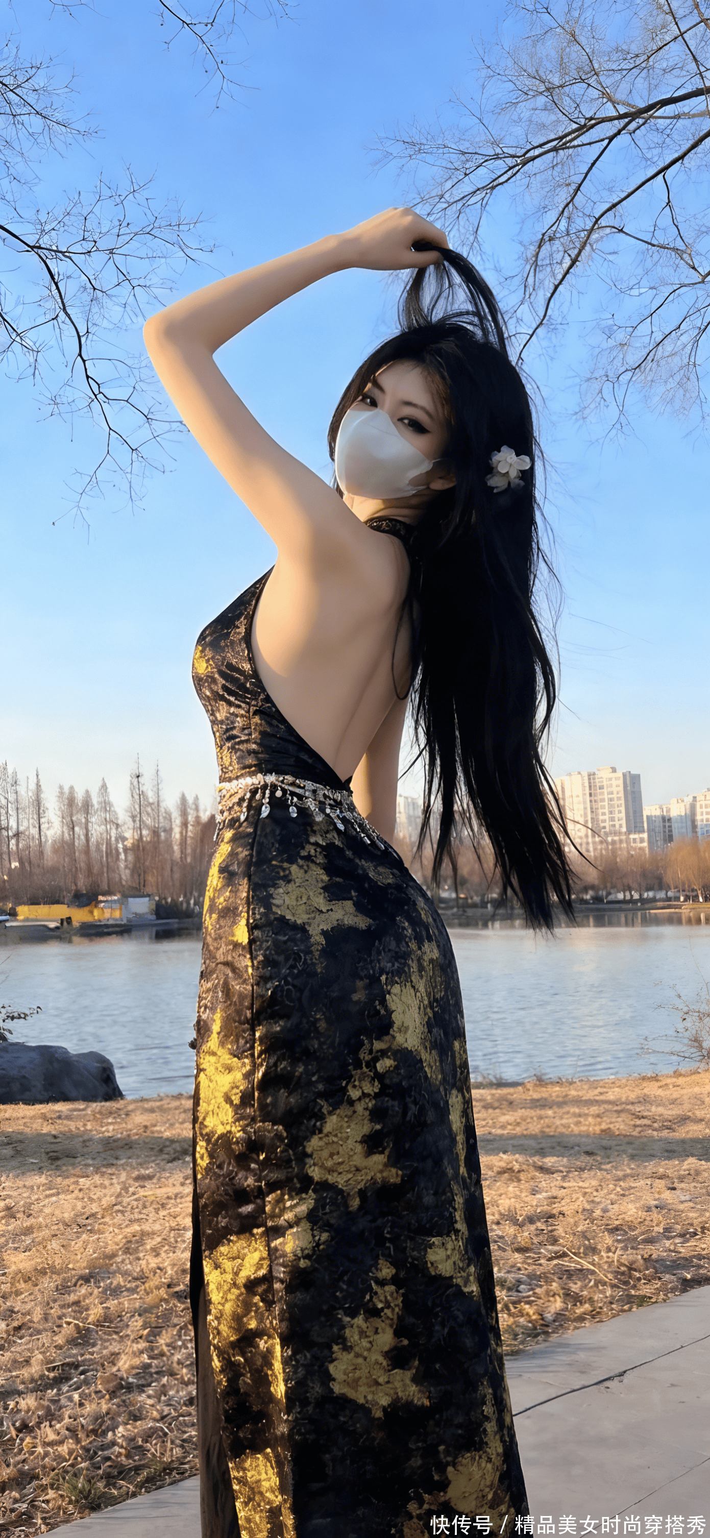 整片大露背毫无保留地舒展,把腰臀比勾勒得淋漓尽致,